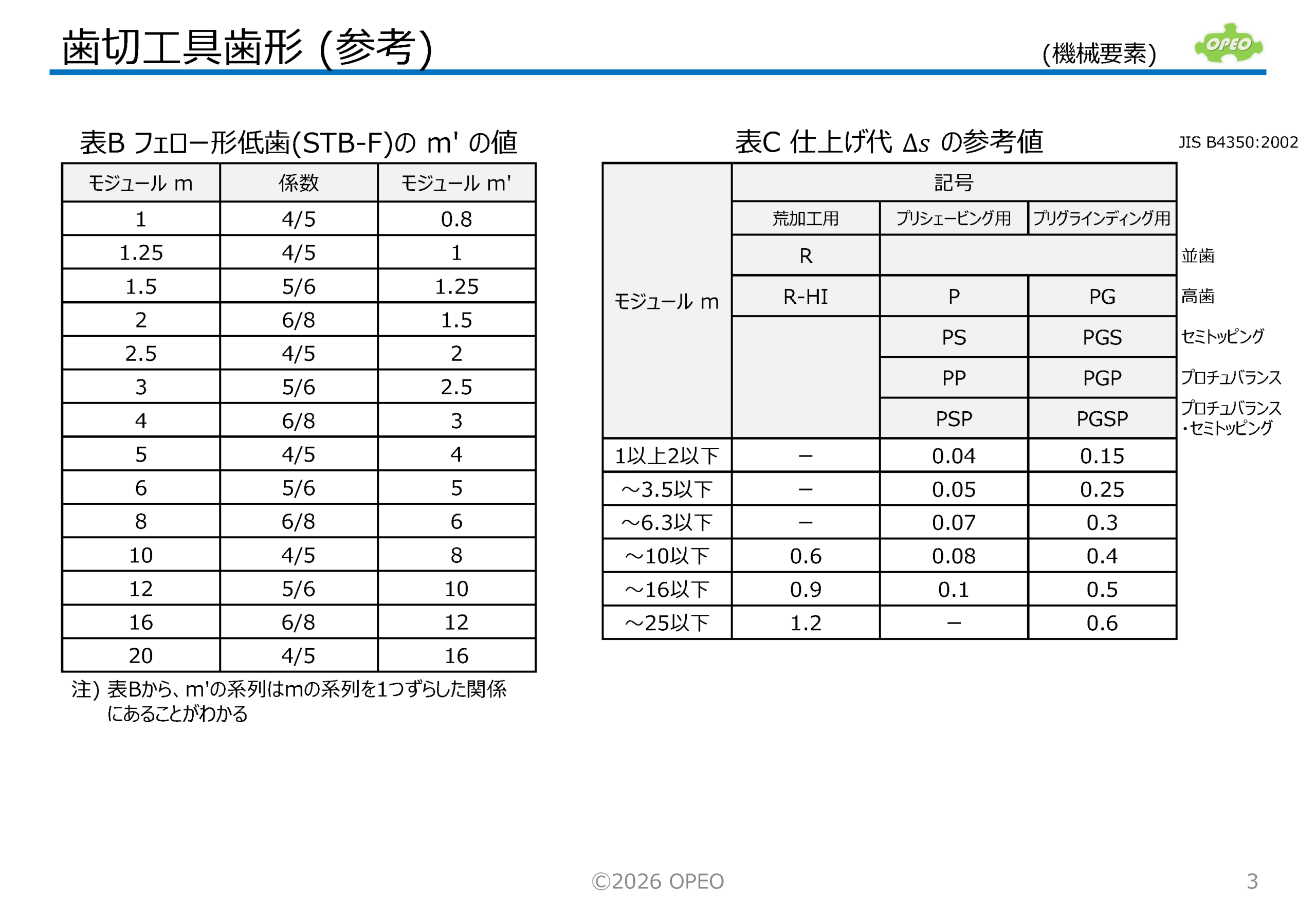 ・JIS B4350:2002 歯切工具-歯形及び寸法