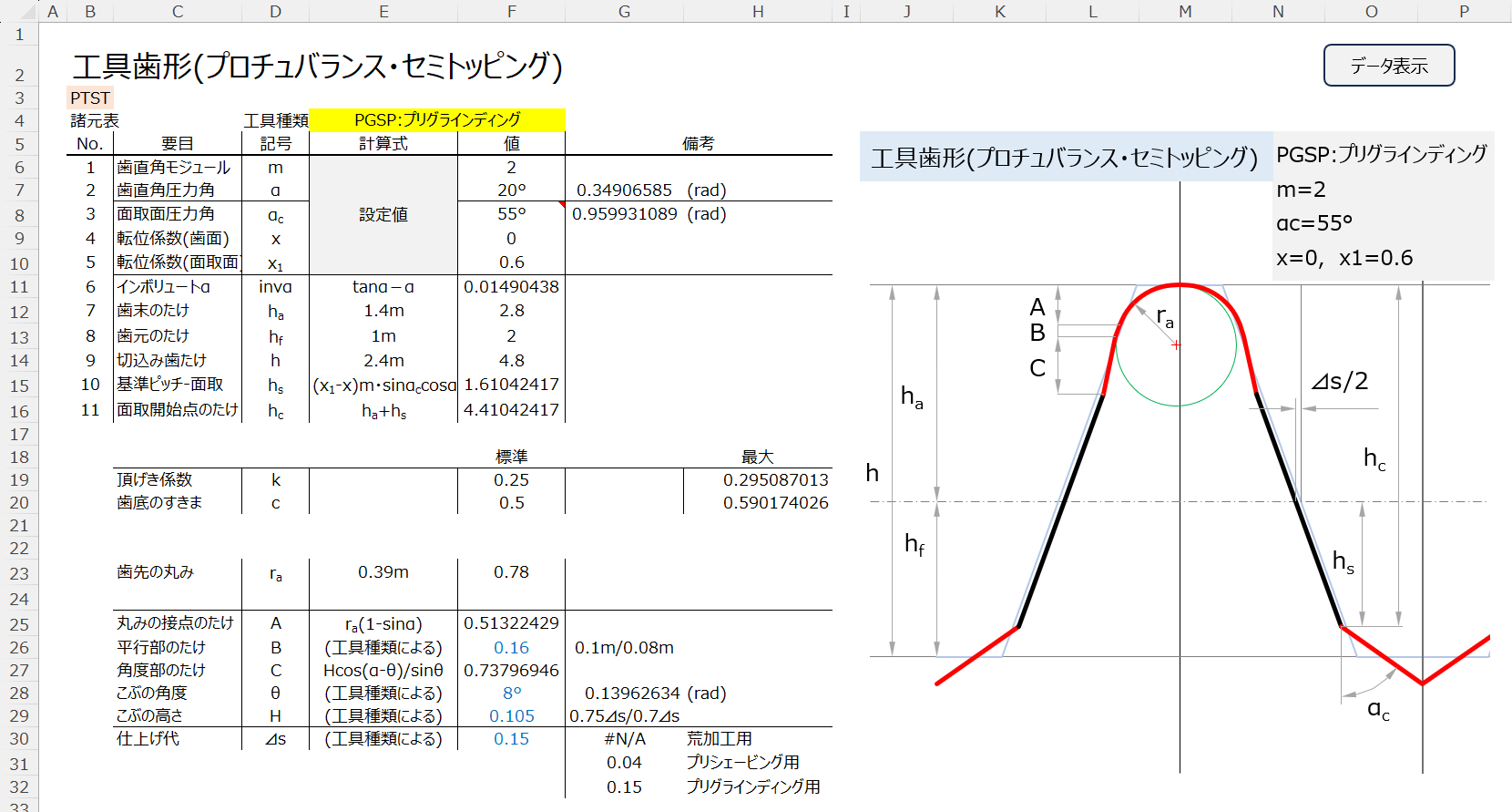歯切工具歯形Excel