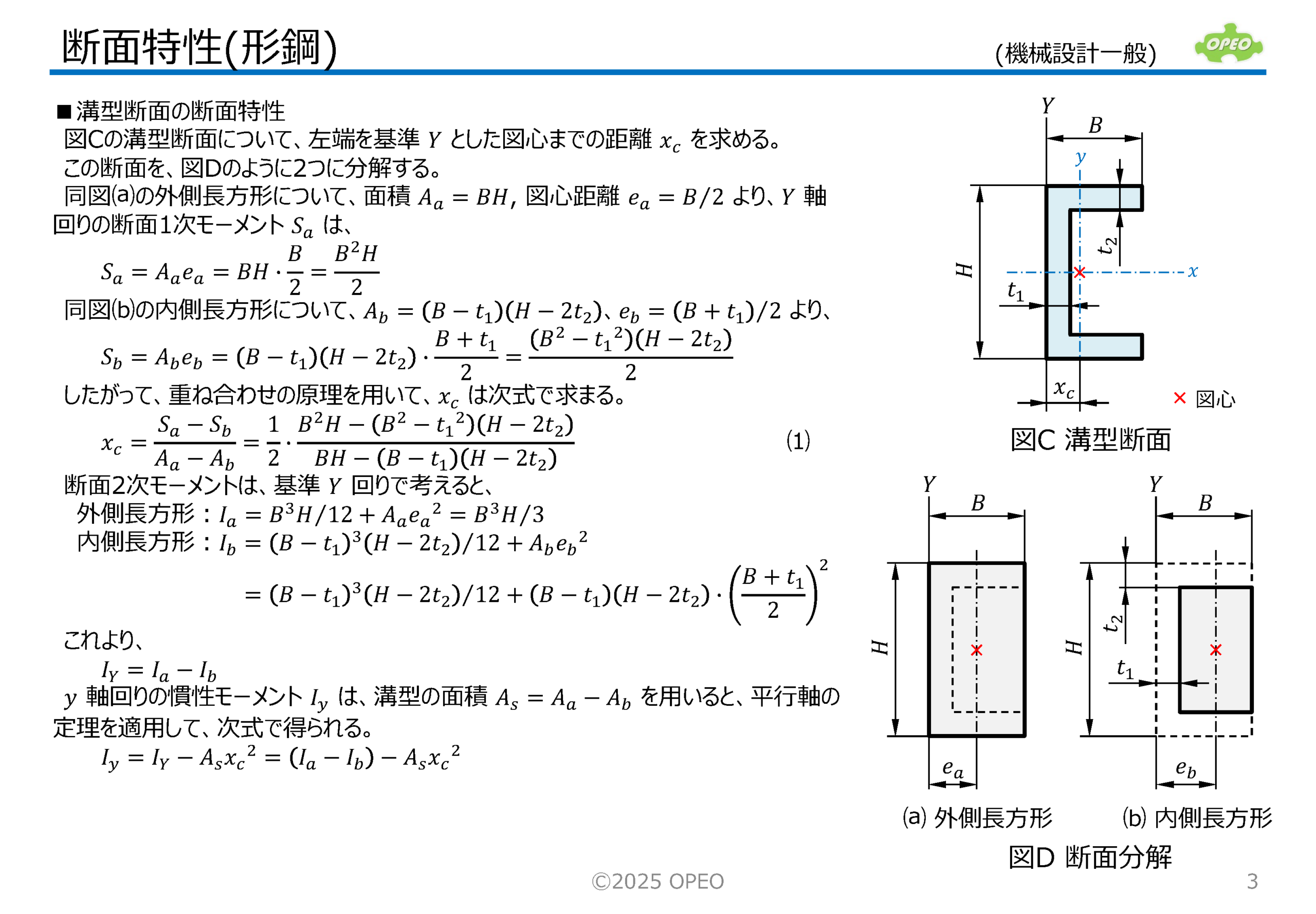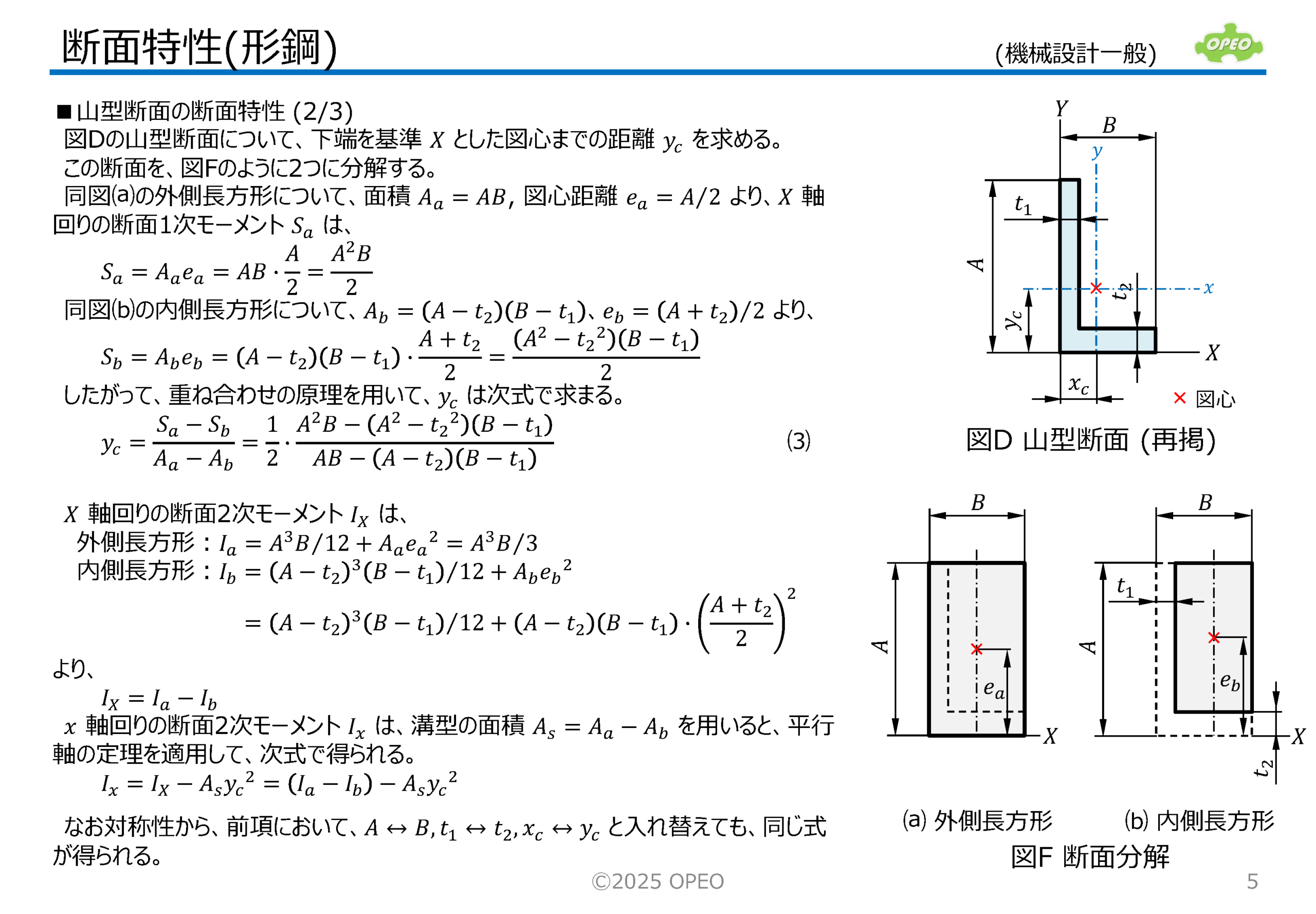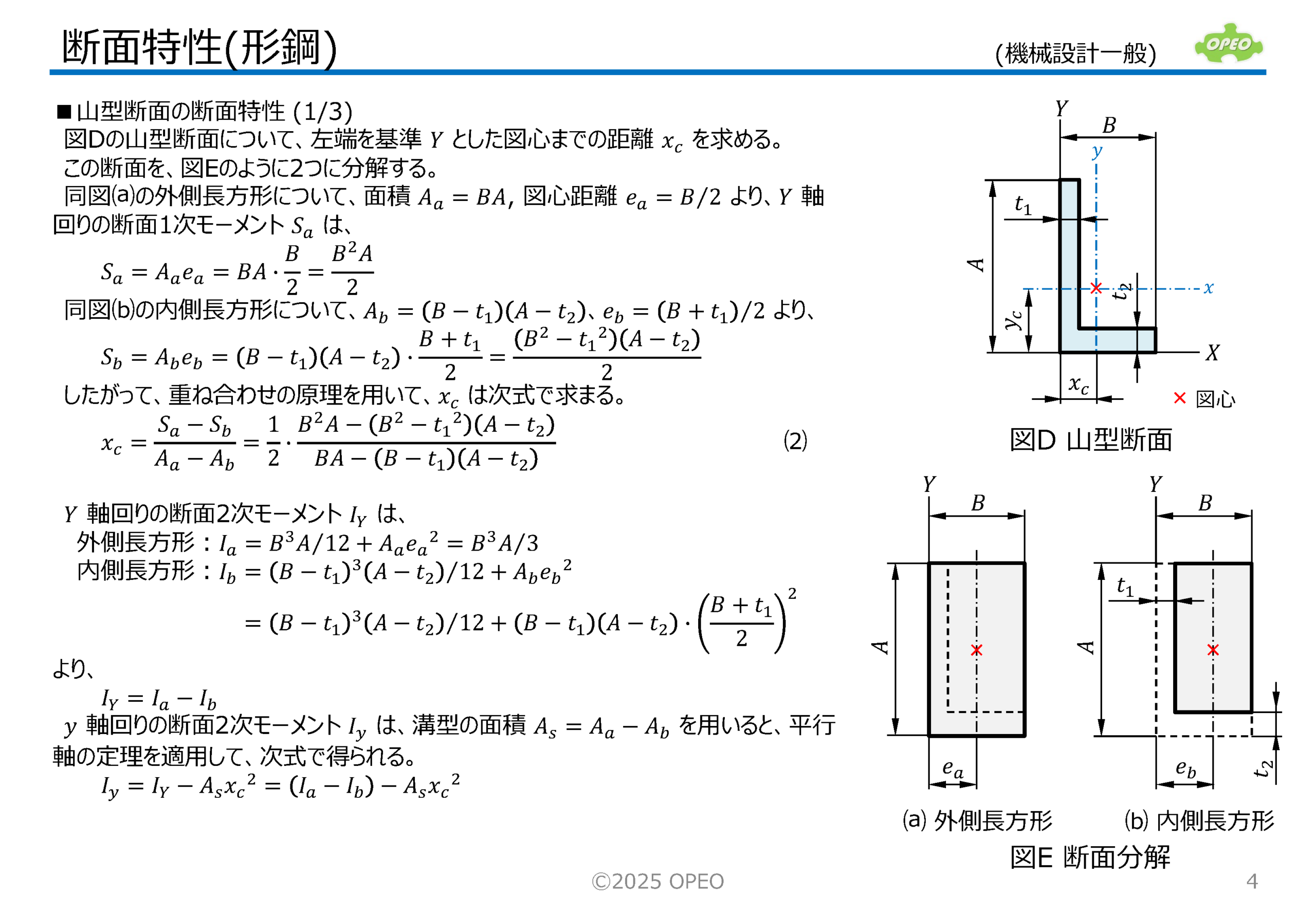 断面特性(Section properties)は、材料力学での重要指標です。 ここでは、JIS規格の形鋼断面について、その断面特性を求める手順について解説しています。 また、代表的な形鋼断面について、断面特性を計算するExcelシートを添付しています。